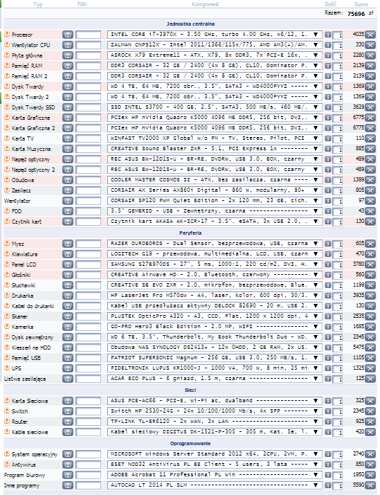 Za pomocą serwisu online arest.pl został skonfigurowany komputer o wartości 75 696 zł.